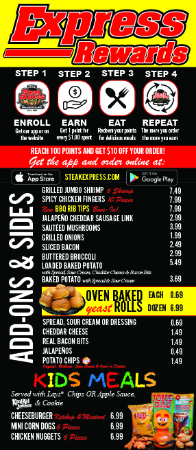 Prices subject to change without notice due to market conditions. Consuming raw or undercooked meats, poultry, or fish may increase your risk of food-born illness. Steaks are cooked to order.